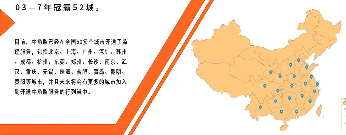 截止2025年08月「牛角監」在全國已成立40家分部