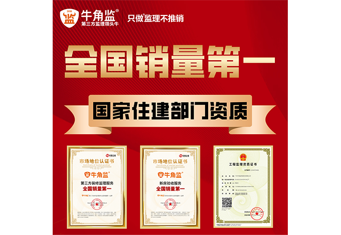 廣東牛角監網絡科技有限公司成立于2016年,是一家在國家住建部公告,受到國家相關法律法規保障和認可的權威裝修監理企業。牛角監以“讓天下裝修沒煩惱”作為公司使命,以“只做監理不推銷”為行動原則,是第三方裝修監理行業的開創者和市場的霸冠者。牛角監的服務范圍覆蓋了全國主要的一、二線城市。牛角監第三方裝修監理和新房驗收雙項服務,全國銷量第一。牛角監經國家統計局授權的市場權威調查與研究咨詢機構根據2024年度數據調研確認:牛角監榮獲“第三方裝修監理服務全國銷量第一”和“新房驗收服務全國銷量第一”的雙重認證,進一步彰顯了牛角監在行業的領頭牛地位。牛角監,資質更硬,更權威,受法律保障。牛角監擁有國家住建部門頒發的,在中華人民共和國城鄉和住房建設部官方網站公告的“全國房屋建筑工程乙級監理資質”、“全國市政公用工程乙級監理資質”,以及“全國裝修裝飾甲級監理資質”。是裝修監理行業惟一一家擁有三大齊全資質的裝修監理公司。牛角監的相關監理資質以及監理結果權威受到《中華人民共和國建筑法》、《中華人民共和國城市房地產管理法》、《建筑工程質量管理條例》等國家及地方法律法規的保障和認可。牛角監,只做監理不推銷。牛角監不同于裝修監理行業普遍把監理客戶當成流量資源,從而向客戶推銷建材家居各類產品的商業模式。牛角監以“只做監理不推銷”核心原則,只聚焦于裝修監理業務,決不向客戶推銷任產品,堅決反對任何可能產生影響第三方監理公平、公正角色的行為。牛角監,奧運冠軍聯袂代言。2024年,牛角監聘請了奧運冠軍陳穎等五位冠軍,作為企業的形象代言人。充分展示了牛角監專注于第三方監理,不做任何推銷的準則。更體現了牛角監在行業中的地位。牛角監始終堅持“讓天下裝修沒煩惱”企業使命,堅定客戶方角色,為用戶提供收房驗房、審核報價、施工巡檢、節點驗收、竣工驗收、工程量核算、材料核驗、環保監測等監理服務,堅持監理標準化、過程透明化、執行預警化、管理實時化的理念,用心做服務,極力為客戶創造舒心的裝修過程和完美的裝修結果。牛角監持續地為客戶創造價值,促進裝修行業的健康發展。