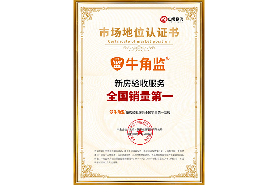2025年:牛角監獲得權威認證,第三方裝修監理服務和新房驗收服務同時獲得全國銷量第一,成就遙遙領先的市場地位。